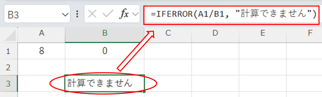 B1が「0」や空白でも、「#DIV/0!」ではなく「計算できません」と表示され、資料がよりわかりやすく丁寧な印象になります。